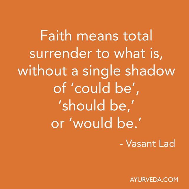 Faith means total surrender to what is without a single shadow of 'could be, 'should be' or 'would be'.