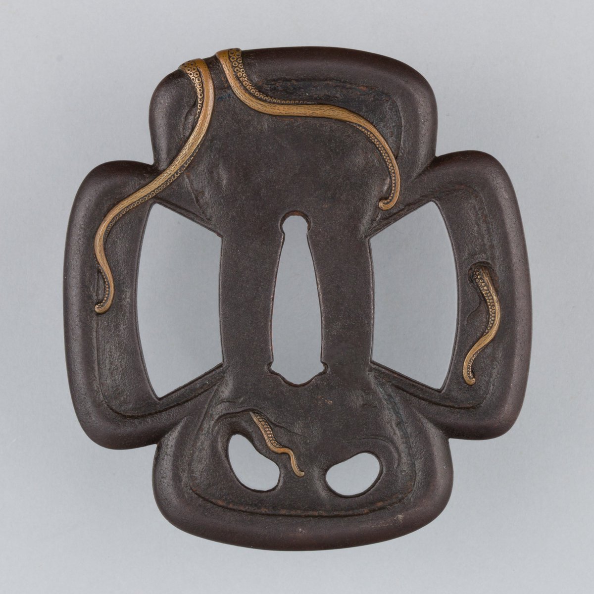 Mounted between the sword’s blade and grip, a tsuba provides balance and protection to its user's hands.