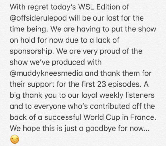 @DanielleDonk@MesutOzil1088 any chance you can find a sponsor for this excellent and well-established@OffsideRulePod#WSL podcast? https://twitter.com/OffsideRulePod/status/1224363576443449353 …