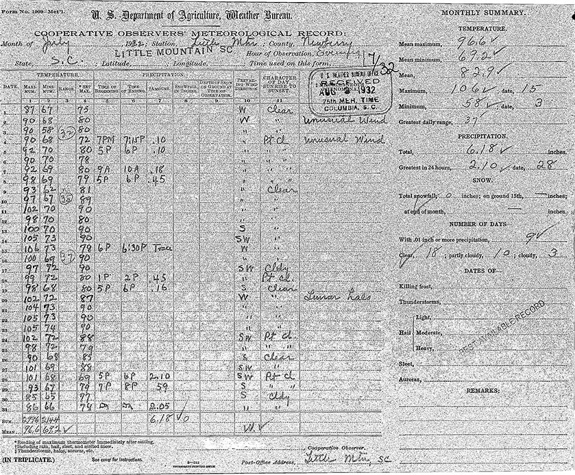 On this date in 1932, the NWS Cooperative Weather Station in Little Mountain recorded a high temperature of 106˚F. This station is still active and has been collecting daily temperature and precipitation data since 1894.
