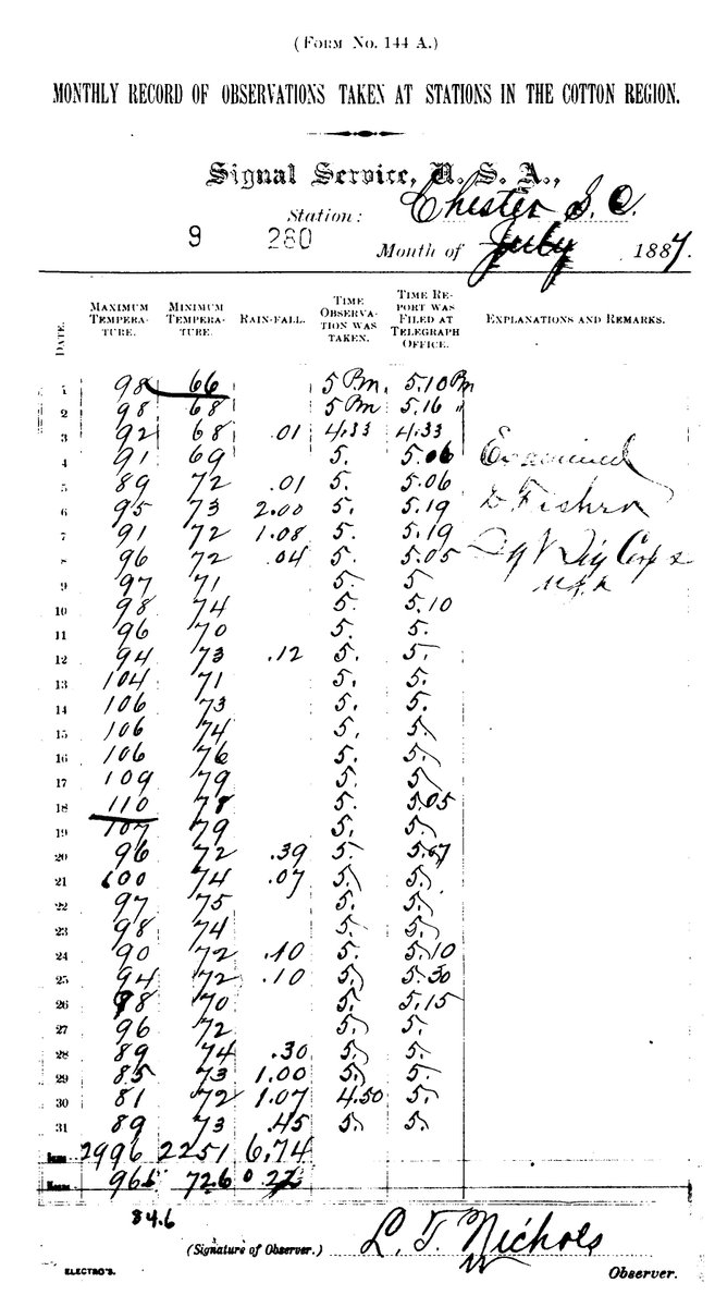 On this date in 1887, the United States Signal Service stations in Chester reported a high temperature of 110°F and 106°F in Greenville.