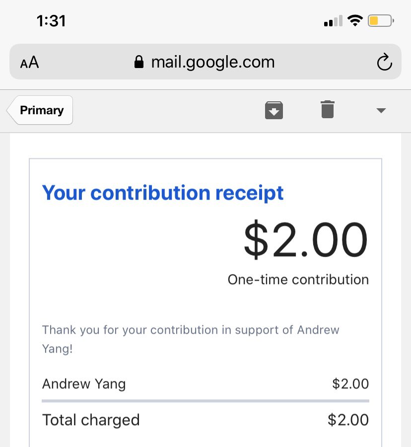 #yangang ? Please donate and buy merch. This is how Andrew keeps ads on TV and more states are coming. This is at least my eighth time donating and OG Yang could use the reinforcements.#iowaforyang#Yang2020pic.twitter.com/j3BZgqPJ2V