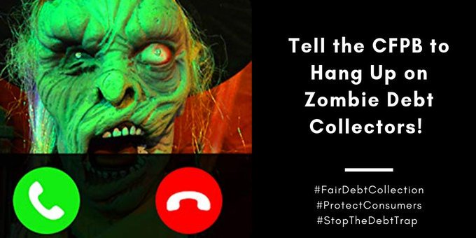#Halloween, scare@CFPB into dropping its proposal to help debt collectors collect#zombiedebt that is so old it's past the legal deadline.#ProtectConsumers#FairDebtCollectionpic.twitter.com/XcJCaRwB1C