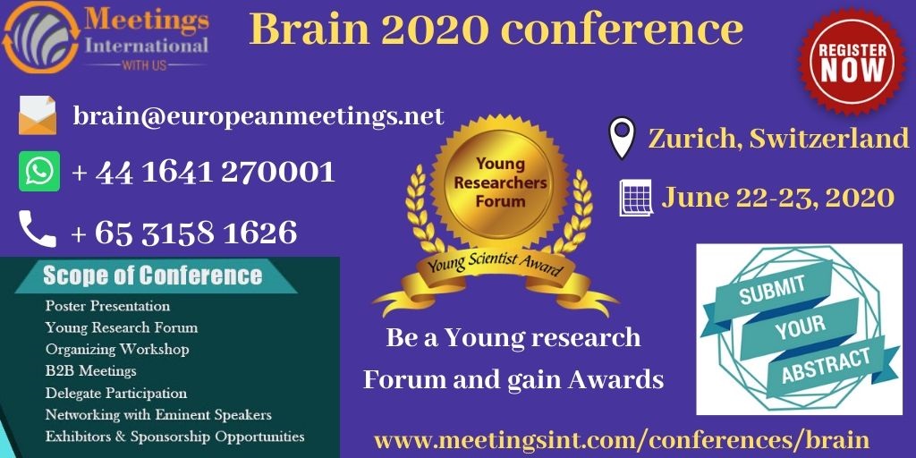 #Brain#Stimulation which is going to be held at#Zurich,#Switzerland during#June 22-23, 2020 invites all the global researchers, scientists, doctors to attend this esteemed event. Submit your abstract soon. Register soon to avail the early birdpic.twitter.com/ntq3vC6jQp