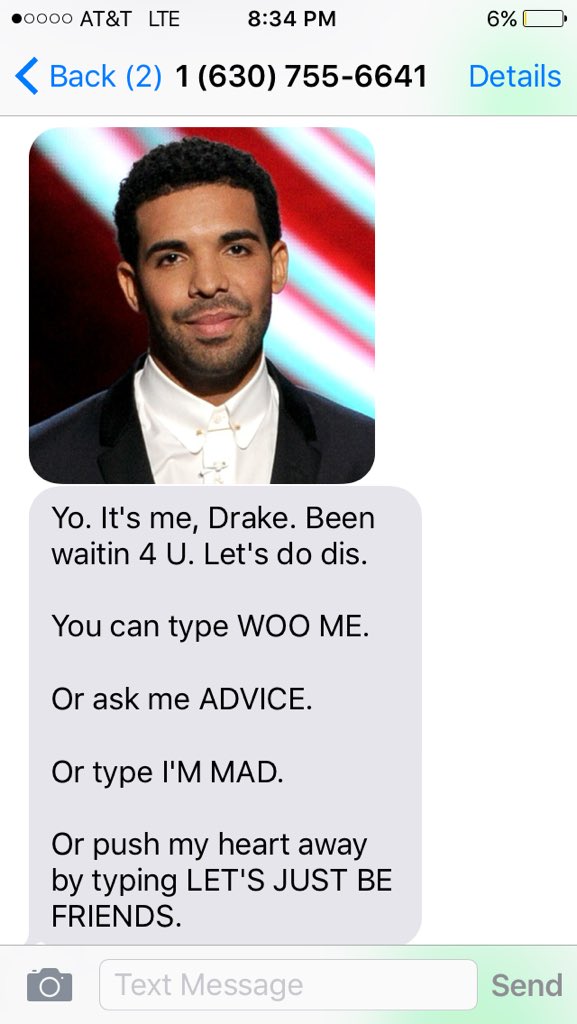 @hassanisms I'll be making some enhancements to Botline Bling today to make it even Drake-ier. Keep playing aroun with it and texting it!
