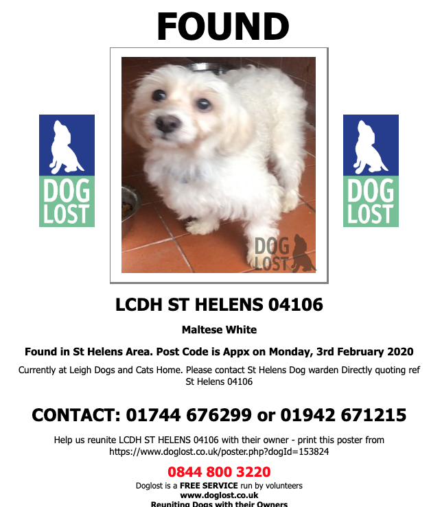 #FOUND UNKNOWN#DOG LCDH ST HELENS 04106#Maltese#St Helens#WA10 Area. Monday, 3rd February 2020#FoundDog https://www.doglost.co.uk/dog-blog.php?dogId=153824 …@VetsGetScanning@SAMPAuk_@fionamongerDL@ClaireBearGDL@SarahP2311pic.twitter.com/OibBFXD68Z