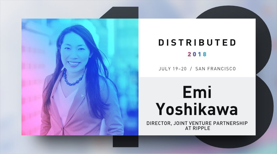 @emy_wng, biz dev@Ripple, speak at Distributed 2018 - The blockchain event of the summer. Register now to be a part of the 2-day conference on July 19 - 20 in San Francisco! http://2018.distributed.com Use code DIST15 for a 15% discount!pic.twitter.com/VHN8tzxmI3