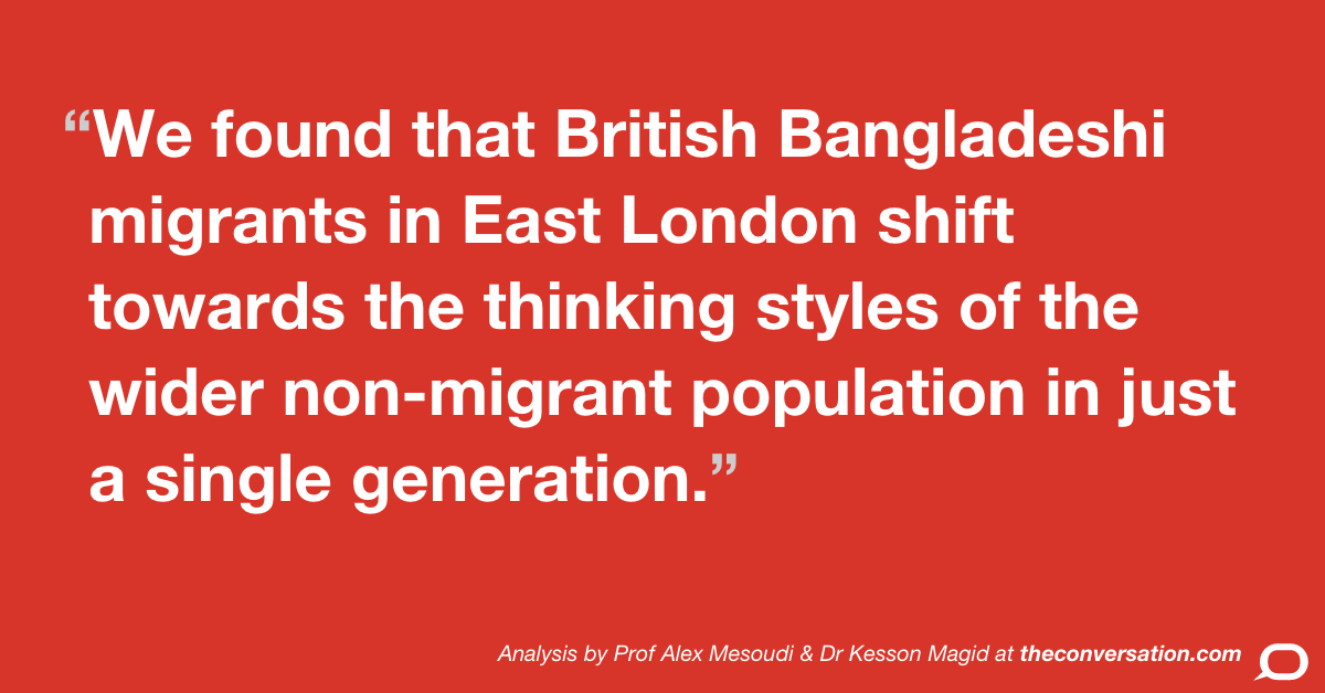 Migrant communities think more like non-migrants after just one generation – study http://bit.ly/1OuNAXx pic.twitter.com/zdyetMhJXk