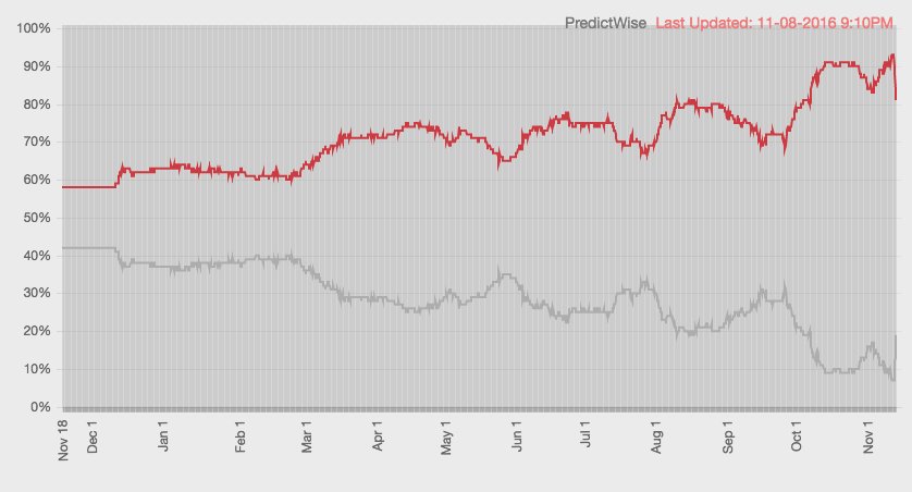 Please the stupid betting markets no better than other elite methods of prognostication. See Dewey - Gallup Roper