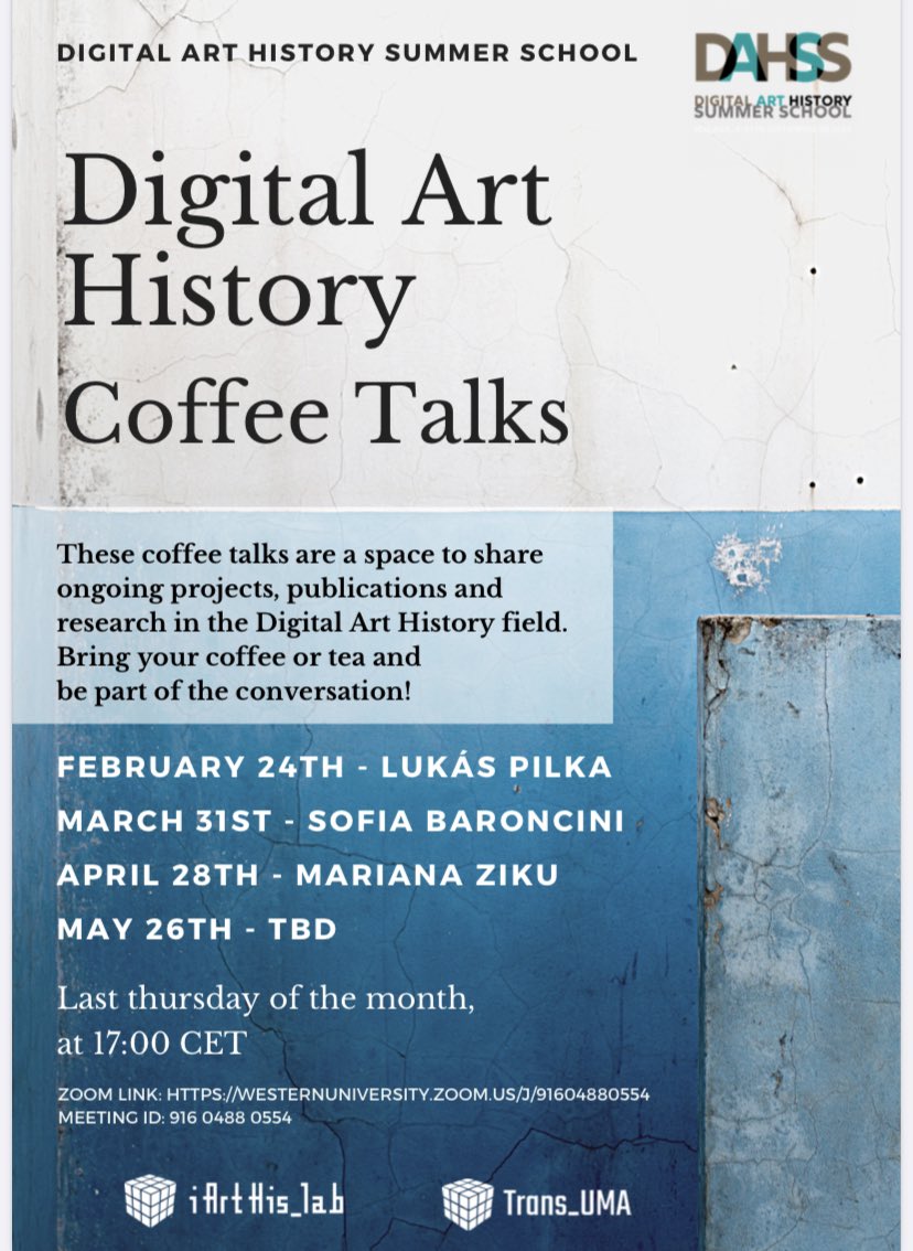 We are glad to announce that the Digital Art History Coffee Talks sessions start in February! This year, the sessions will be on the last Thursday of the month at 17:00 CET.pic.twitter.com/JdRAoynG2P