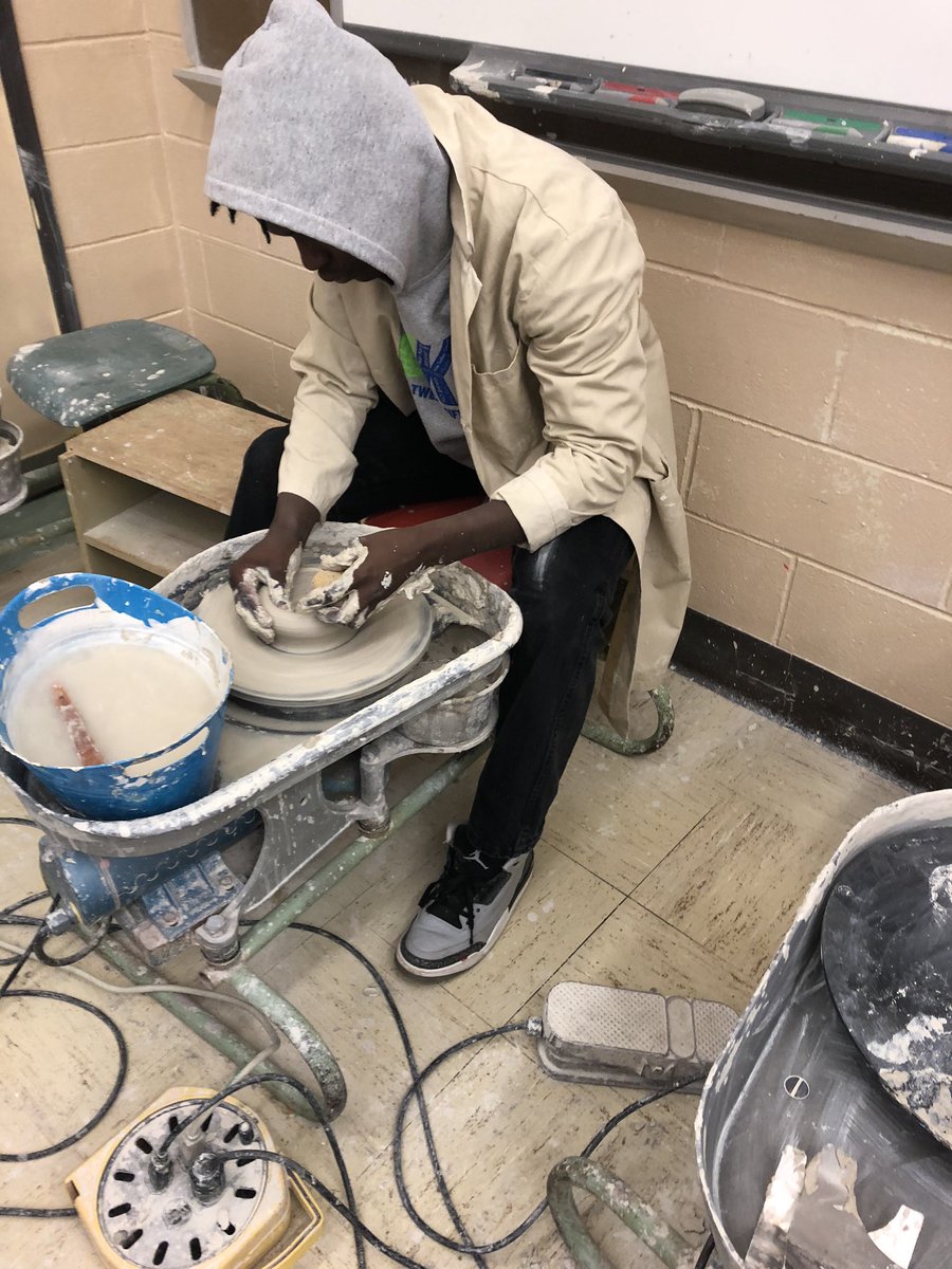 This was his first day on the wheel, 4 bowls thrown & eager to do more