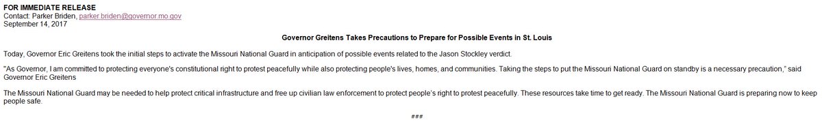 Gov. Greitens puts MO National Guard on "standby" ahead of Stockley verdict.