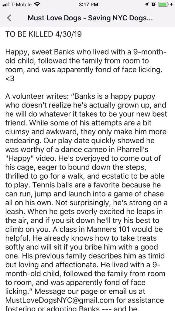 @chortletown to find a Rescue or Foster/Adopter. We save him by sharing him. PLEASE RT BANKS! https://www.facebook.com/mldsavingnycdogs/photos/to-be-killed-43019happy-sweet-banks-who-lived-with-a-9-month-old-child-followed-/959153670937570/ …pic.twitter.com/ZZryKv6v0h