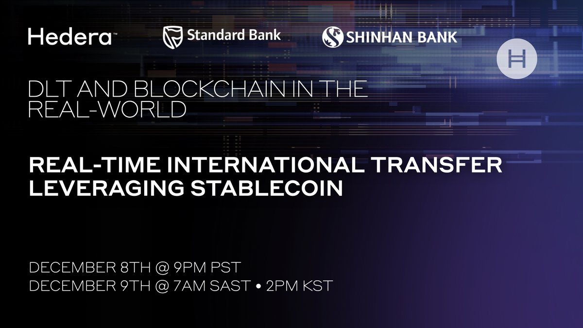 @ShinhanBankENG and@StandardBankZA have united in a proof-of-concept on Hedera. Subscribe & set a reminder to watch a live demo of their#stablecoin solution: https://hedera.com/stablecoin-settlement …pic.twitter.com/GR7TMkTFhG