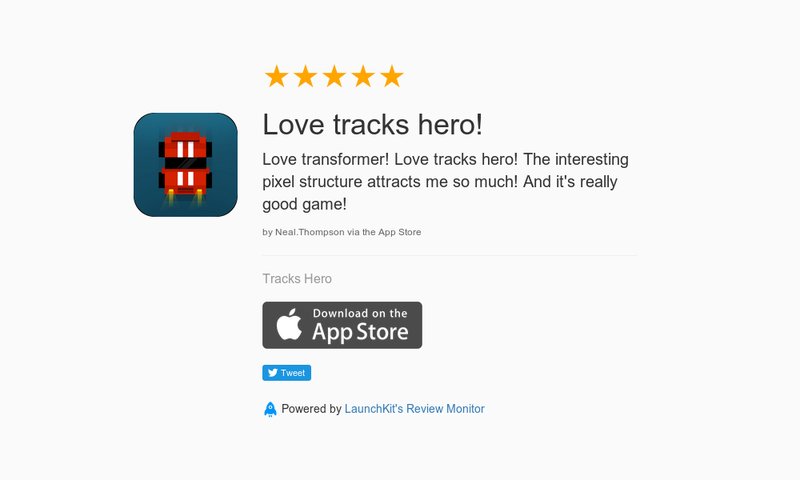 5 Star Review: "Tracks Hero: Its wonderful game. Very interesting challenging addictive fu…" https://launchkit.io/reviews/Gxk1CR1qlKc/ …pic.twitter.com/vHZWLB5bi9
