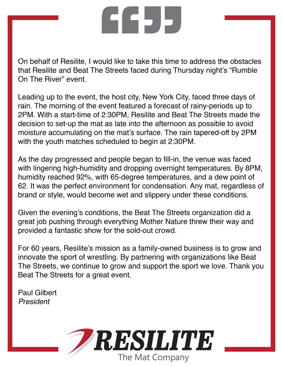 I wrestled on UWW regulation mats outdoors in Greece in 2013... when it was daytime and the sun was out mats were fine, after sunset the mats got really slippery too. I don’t think it’s a mat issue but simply factor of weather.https://twitter.com/resilite/status/997597698831269888 …