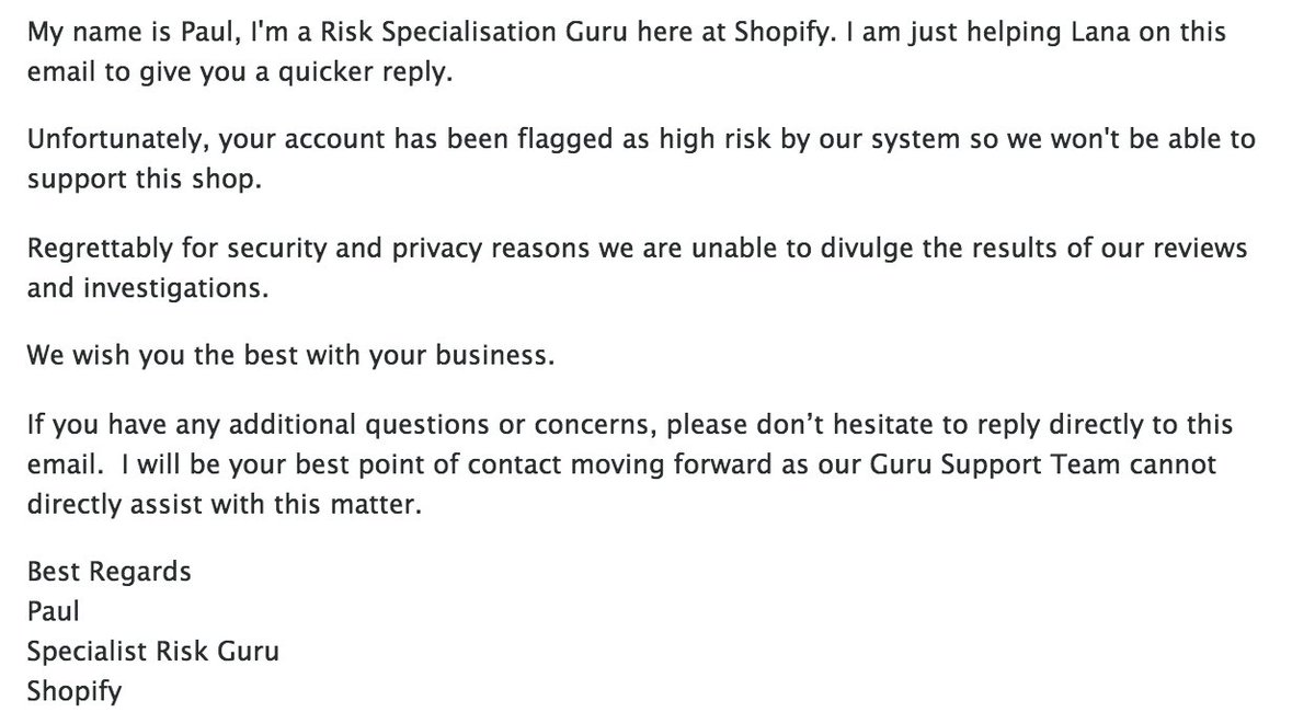 @ShopifySupport and the way they have handled my business. Totally shut down my store with no rhyme or reason. Simply that I need to move on and forget about@Shopify