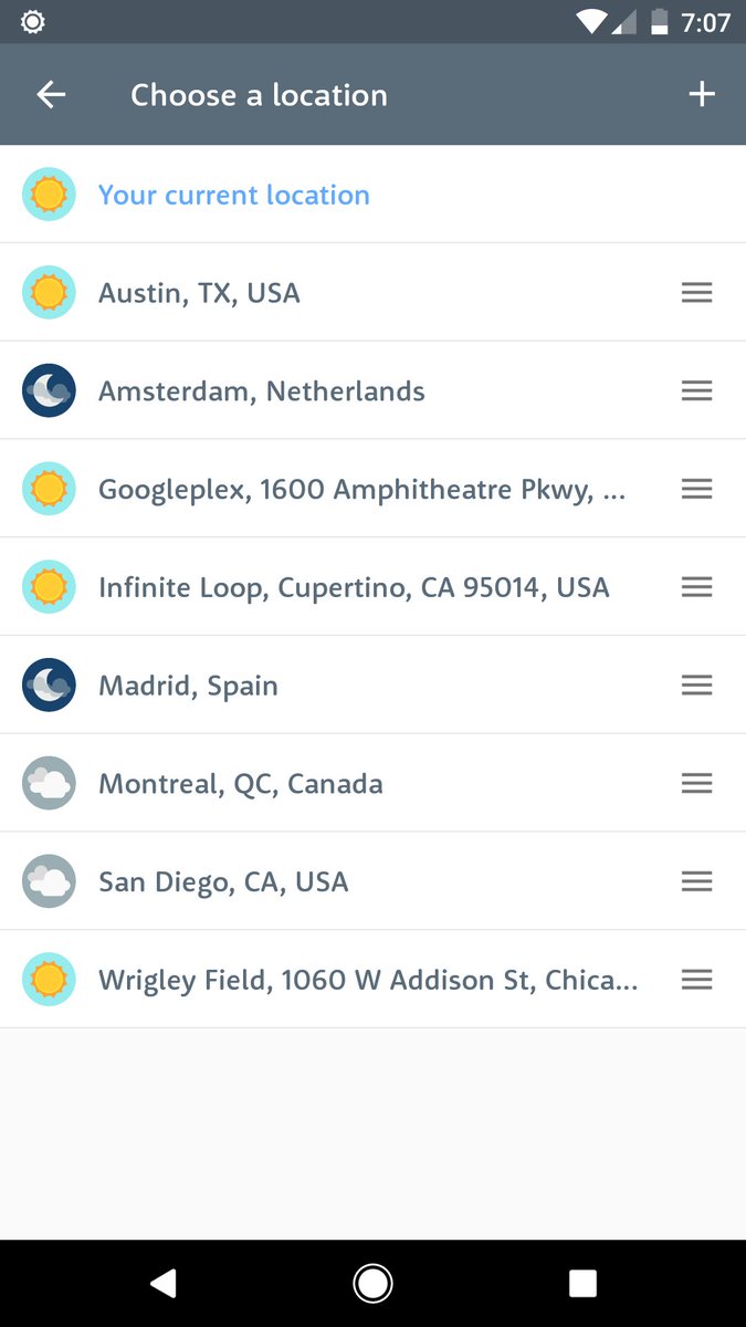 Some new fun in Hello Weather Android—app shortcuts! Available now for 7.1+ folks.