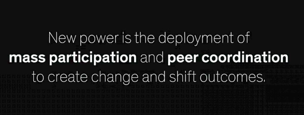 "OLD POWER models ask of us only that we comply (pay your taxes, do your homework) or consume. NEW POWER models demand and allow for MORE: that we share