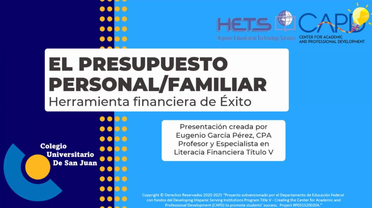 Muchas gracias al Prof. Eugenio García del Colegio Universitario de San Juan por compartir con más de 200 participantes de PR, EU y Colombia, el tema enfocado al presupuesto como una herramienta financiera hacia el éxito.