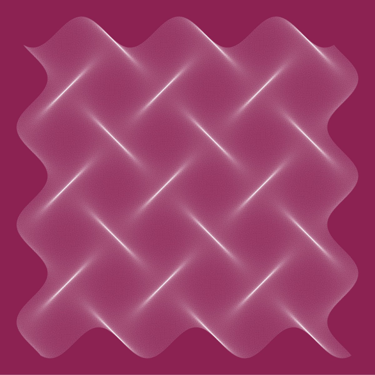 library(tidyverse) seq(-10, 10, by = .05) %>% expand.grid(x=., y=.) %>% ggplot(aes(x=(x+sin(y)), y=(y+cos(x)))) + geom_point(alpha=.1, shape=20, size=0, color="white")+ theme_void()+coord_fixed()+theme(panel.background = element_rect(fill="violetred4"))