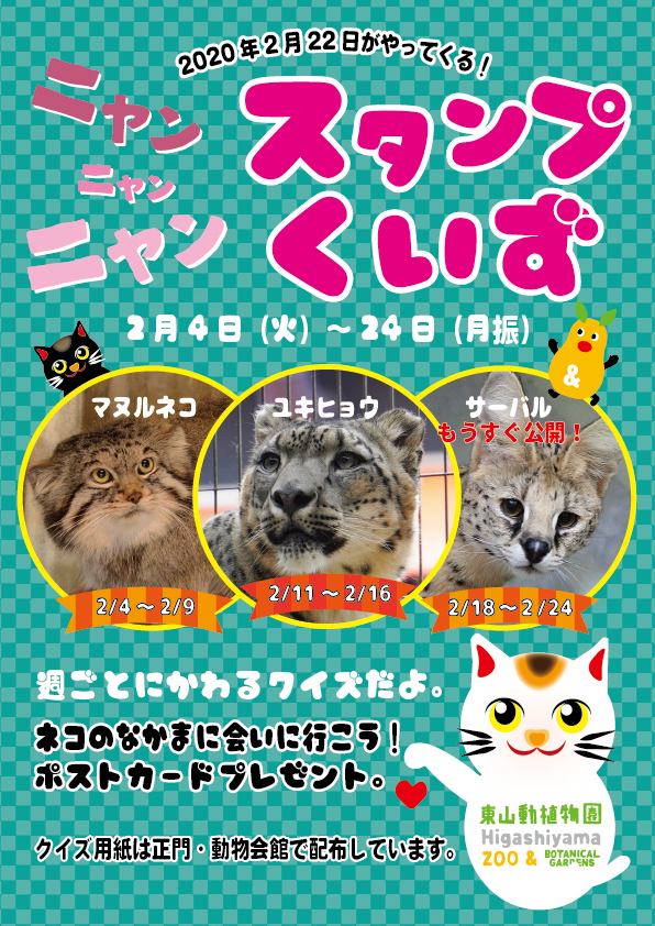 令和2年、2020年、2月。2(にゃん)が多めの今月。 今日から、週替わりでポストカードがもらえるクイズが始まりました!! ぜひ、東山のネコの仲間たちに会いに来てくださいね。