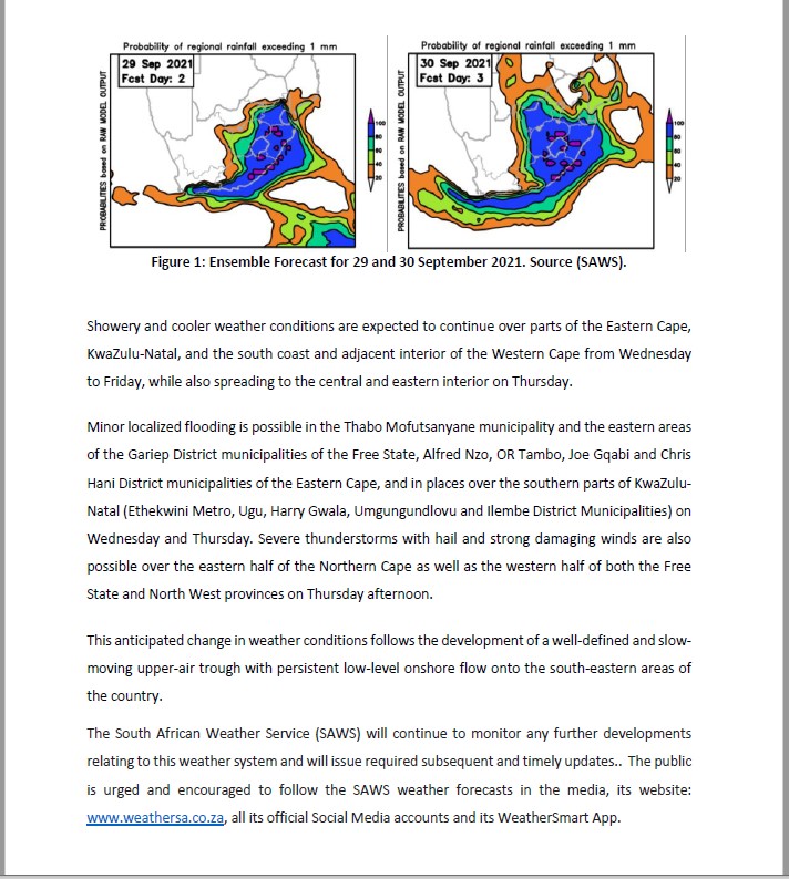 MEDIA RELEASE: Windy and stormy conditions likely over parts of South Africa this week (29 September to 02 October 2021)pic.twitter.com/ebgSvzYagt