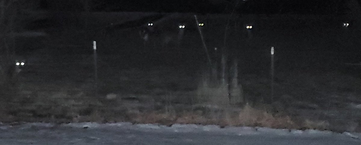I took the dogs out. Dogs started barking, so I turned on the flash and took a picture into the darkness. The eyes have it...pic.twitter.com/UbsVvClqO0