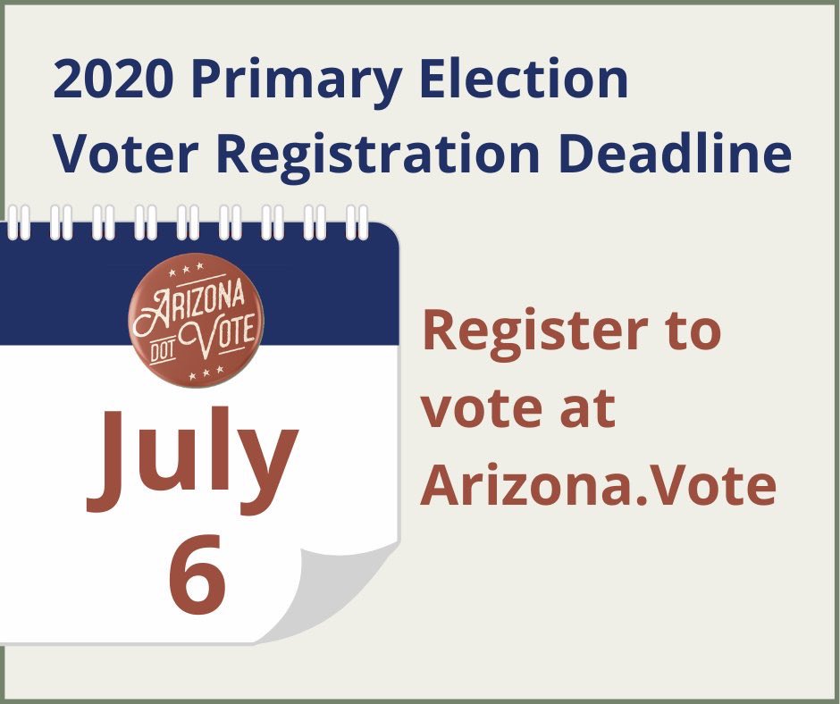 Today is LAST DAY to register to vote in Arizona’s August 4th Primary Election! Go to http://Arizona.vote to make sure you’re registered.