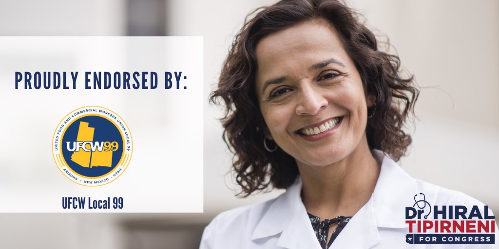 Thankful for endorsement of @UFCW99, which represents over 23k workers across AZ, from retail workers to medical office workers. All workers deserve fair wages, robust benefits & safe working conditions. I'll fight for them & their families in Congress! #AZ06 #UnionStrong 💪🏼pic.twitter.com/TdXgUYT9h2
