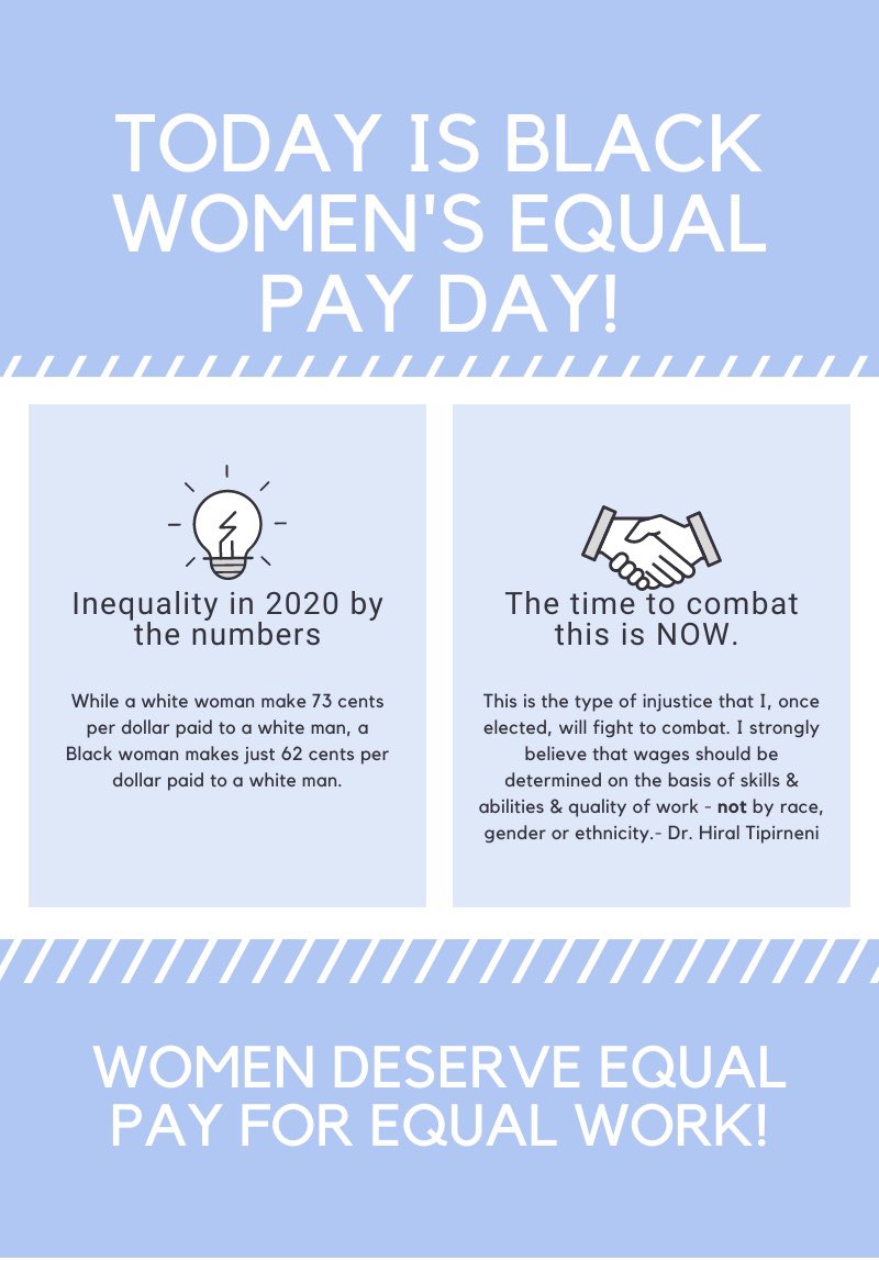 Every year, the wage gap costs Black women $23,653. Today, on Black Women’s Equal Pay Day, I vow to do everything in my power to correct this injustice and move us towards gender and racial equality.🌟 #AZ06 #BlackWomensEqualPayDaypic.twitter.com/Cc8UQQcA7z