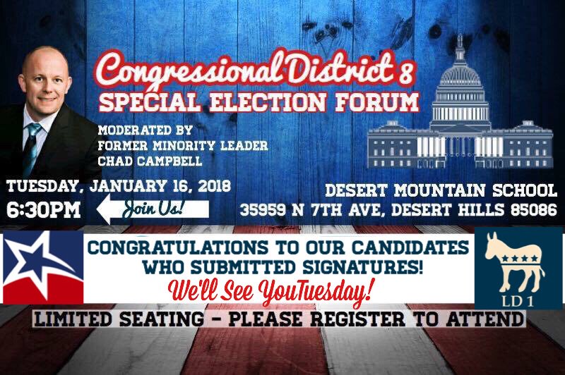 MCDP & LD1 Dems are hosting a forum for @hiral4congress and @BWestbrookAZ8 for the Congressional District 8 Special Election! Former Minority Leader @repcampbell lead and moderate the forum.  Please register and bring friends to attend this free event. http://Maricopadems.org/cd8_forum  pic.twitter.com/0TfNRDLjhP