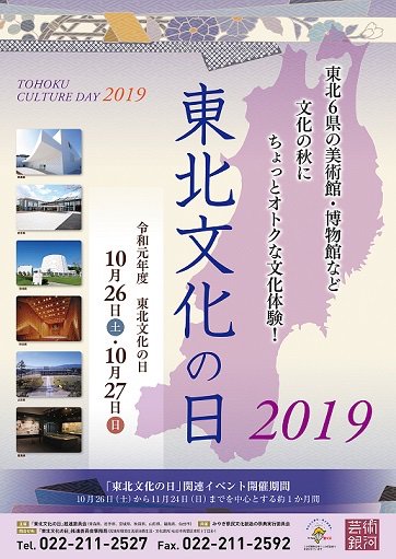 10月26日(土)27日(日)は「東北文化の日」(毎年10月最後の週末)。 11月24日までの約1か月間、東北6県と仙台市では、美術館、博物館などの文化施設で入館特典(無料、割引)やさまざまなイベントが行われます。詳細は下記のWebページでご確認ください。 https://www.yamagata-ebooks.jp/eventbook/10240