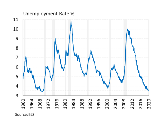 The unemployment rate at 50-year low may be a great headline, but the downtrend is simply a continuation from the Obama administration, which oversaw a 5.3-pntage pnt decline from the peak vs. Trump’s 1.2-pnt improvement. http://bit.ly/37ZeiJ8 pic.twitter.com/yzTNpn7Kp9