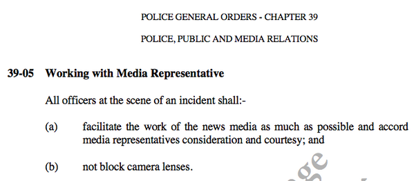 Media professionals, KNOW YOUR RIGHTS. According to Police General Orders Ch. 39 :