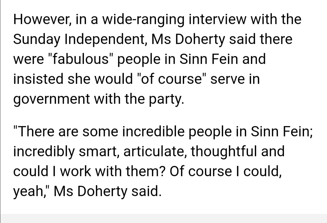 @fiachkelly today that Regina Doherty never said she was open to going into government with Sinn Fein. Not sure why Varadkar keeps claiming she didn't say this when she clearly did. https://m.independent.ie/irish-news/politics/chief-whip-doherty-in-shock-offer-to-sinn-fein-35349631.html …pic.twitter.com/8Vy5ydsks0