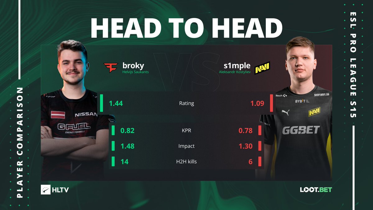 broky outperforms the GOAT as FaZe eliminate the reigning EPL champion in NAVI Highest Rating on the server and 14:6 in H2H kills for the