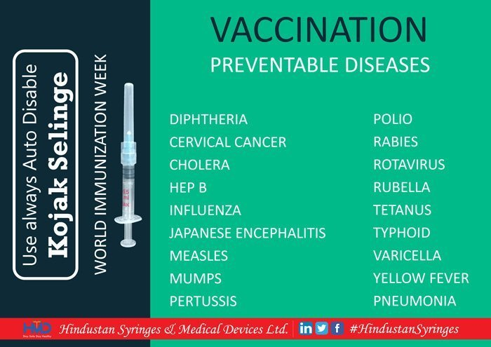 Vaccination preventable diseases Diphtheria, Cervical cancer, Cholera, Hep B, Influenza Japanese encephalitis, Measles, Mumps, Pertussis, Polio, Rabies, Rotavirus, Rubella, Tetanus, Typhoid, Varicella, Yellow Fever, Pneumonia