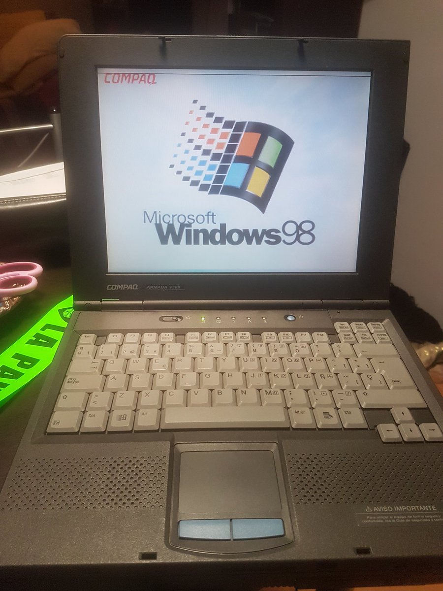 Y aquí estoy, intentando revivir un portátil con Windows 98 dándole vida con @linuxfoundation. A ver si lo conseguimospic.twitter.com/SpGBbL5hyS