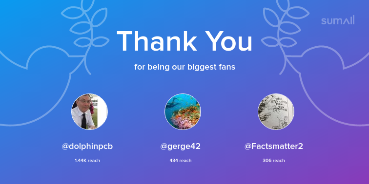 Our biggest fans this week: dolphinpcb, gerge42, Factsmatter2. Thank you! via https://sumall.com/thankyou?utm_source=twitter&utm_medium=publishing&utm_campaign=thank_you_tweet&utm_content=text_and_media&utm_term=d7ccbef2bea22a74b98acb1a …pic.twitter.com/05W2FRhbhb