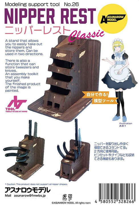 This nipper rest from Asunarow Model assembles easily, and results in a thoughtfully designed, dark brown woodgrain item for your desktop. It allows you to have several sets of nippers within easy reach