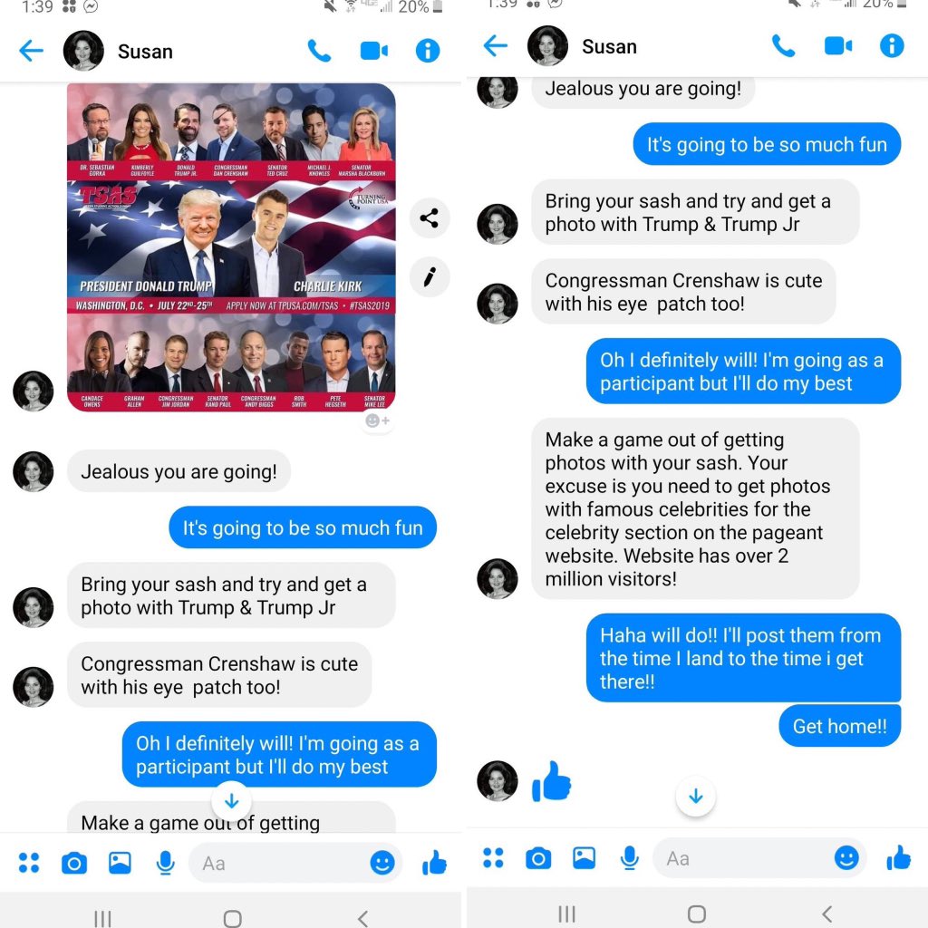 Here is the list of rules for the pageant. The rules state that it is clearly a No Politics Pageant however, it is still unclear as to why Susan Jeske, the pageant CEO, encouraged Katie via Facebook Messenger to get pictures with her sash on with Trump and Trump Jr.pic.twitter.com/1yPkON0ARb