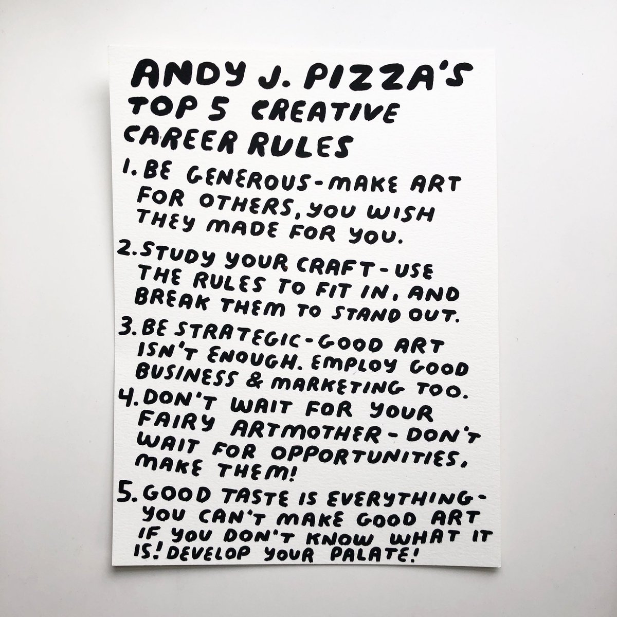 My Top 5 Creative Career Rules P.S. these are 100% true... for me! Don’t like em? Make your own! This is art, you get to make your own rules!pic.twitter.com/XdzA3112Dm