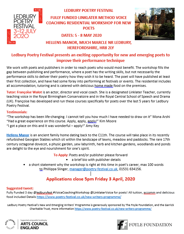Really recommend this opportunity for poets!https://twitter.com/ledburyfest/status/1224320992065073152 …
