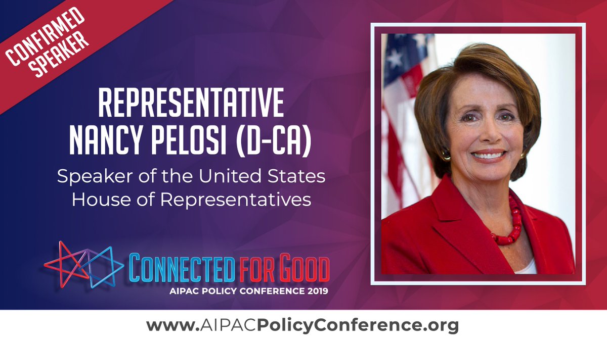 : Speaker of the House Nancy Pelosi will speak at #AIPAC2019.pic.twitter.com/MpbfRRELpO