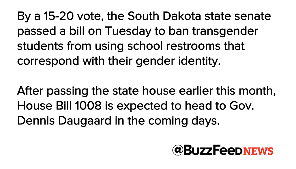 South Dakota just became the first state to pass an anti-transgender student restroom bill http://www.buzzfeed.com/dominicholden/south-dakota-becomes-first-state-to-pass-anti-transgender-st?bftwnews&utm_term=4ldqpgc#4ldqpgc … pic.twitter.com/3a6agmkNPn