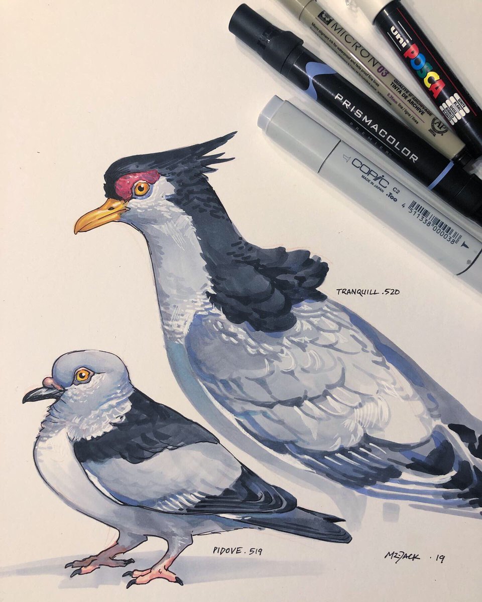 Missed yesterday, but here are some #pokemon for #Inktober2019 today! Just getting back into the swing of working with markers, and using more color, even in more subtle cases like this. #copic #prismacolor #pokemon #pidove #pokemongo #tranquill #pigeon #birds #drawing #mrjackartpic.twitter.com/bMvBjPDk15