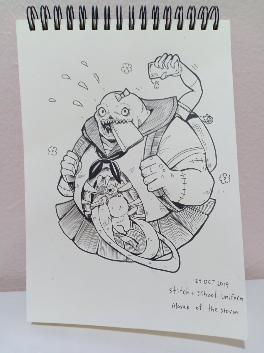 #Inktober2019 Day 29 "Stitch+school uniform" I'm making 2 days delay now, because i just have time to buy new ink pen today.pic.twitter.com/4hK1gez89e