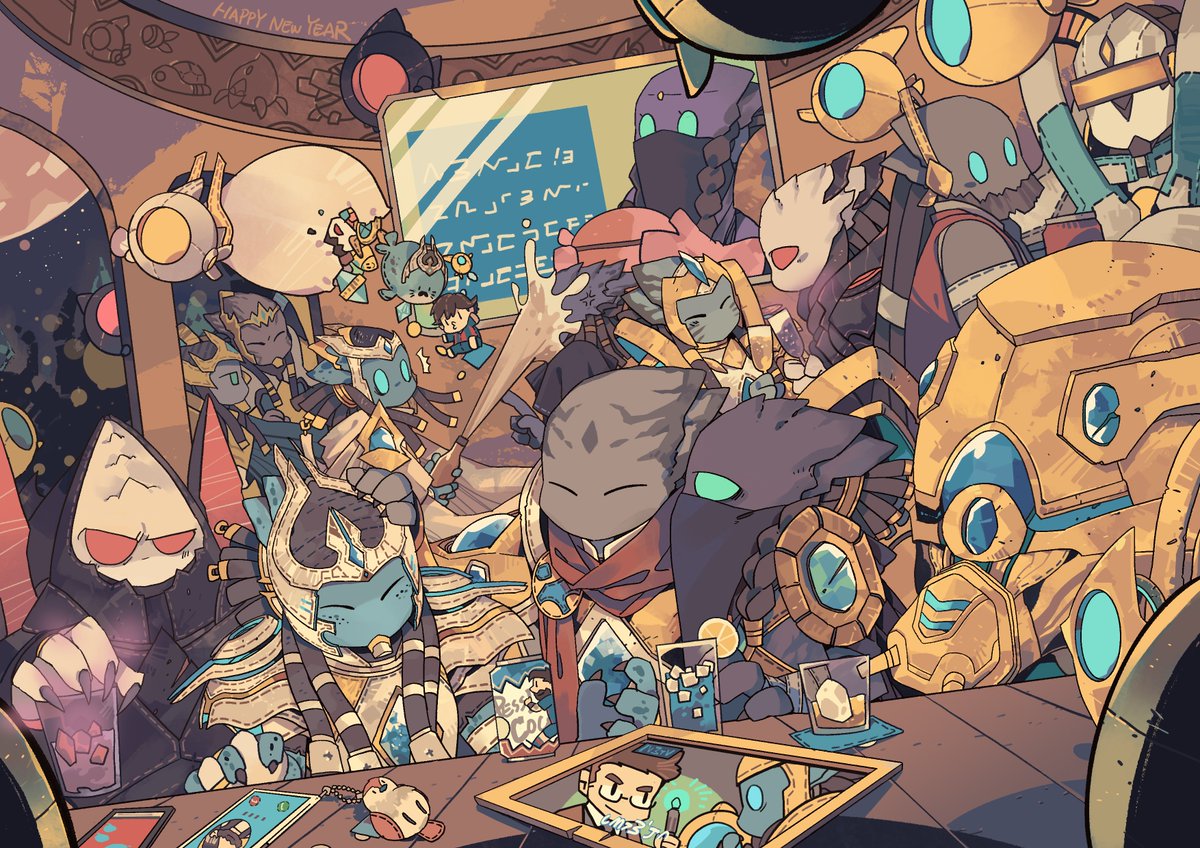#FANART #starcraft #alarak #artanis #Fenix #zeratul #tassadar 【alarak/artanis】 [一场小聚]新年第一张图还是画了星灵!HAPPY NEW YEAR!后面的是俺的原创角色