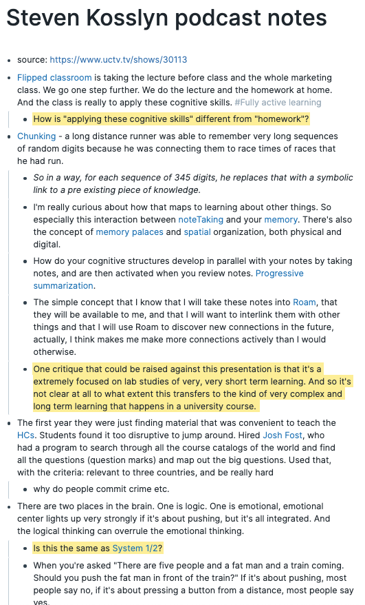Another example of a podcast I processed in this way, where I took a lot more notes, was a great presentation by